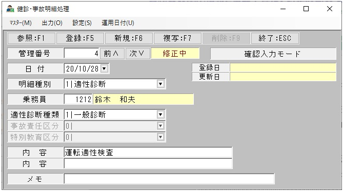 運転者の基本情報と事故や違反、適正診断の受診履歴を管理します 社員マスターに登録した各種情報を運転者台帳として印刷できます